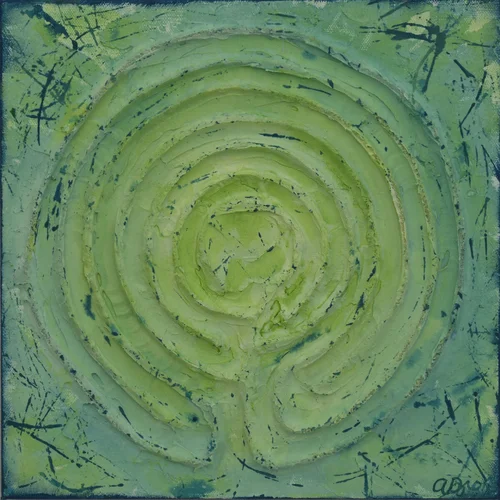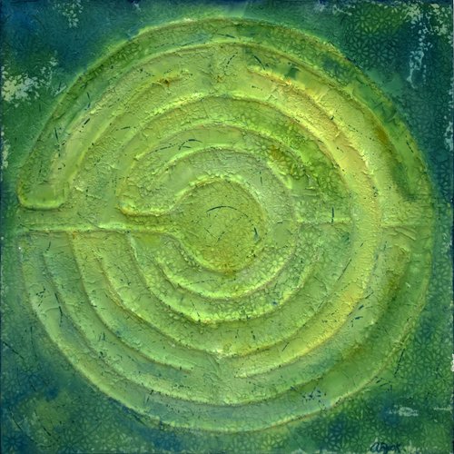 The labyrinth asks one to walk a pilgrimage of meditation. In our increasingly busy world the labyrinth can be a tool to problem solve, quiet the mind and find solutions. It might be difficult to find a walking labyrinth so by creating wall labyrinths one can bring this practice indoors and use it as a tool to navigate life’s challenges.